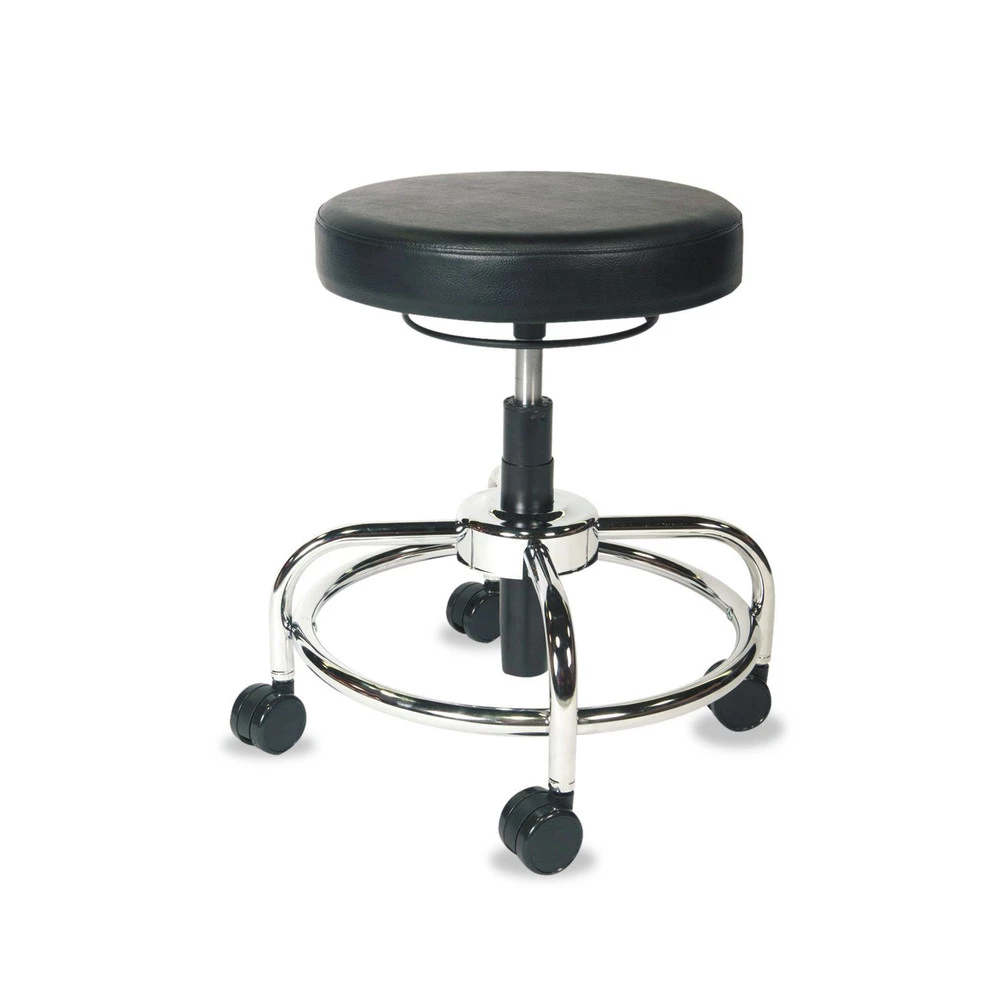 - Anti-microbial vinyl upholstered round seat easily wipes down clean.