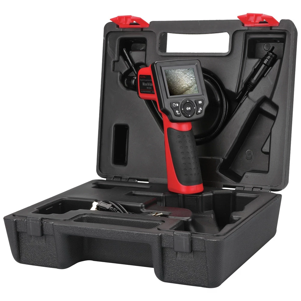 This premier Autel MaxiVideo MV208 digital videoscope is an ideal tool for examining difficult- to- reach areas normally hidden from sight. It features the ability to record digital still images and MPEG2 or MPEG1 videos either on its internal flash memory or on the removable Micro SD Card(Optional). The ergonomic tool not only features a 2.4 in. full color LCD screen, auto focus and viewing capacity as close as 1 in. with crystal clear output, but also offers the capability to stream digital video directly to a PC. The Multipurpose Videoscope is an economical solution to inspect machinery, facilities and infrastructure in the safest, quickest and most cost-effective manner possible.