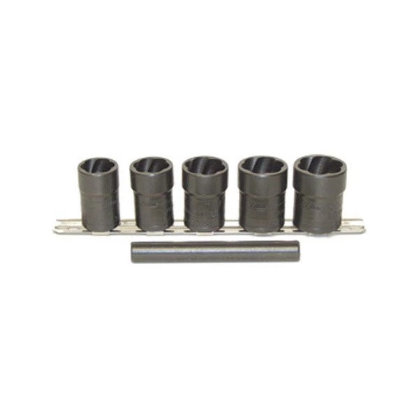 LTI 4400 1/2 in. Drive 6 Piece Twist Socket Removal Kit – Twist Sockets have a fluted design which give the sockets a tight grip to remove the most difficult fasteners. Simply place the twist socket on and twist the damaged fastener off – it?s that easy. No more pounding, chisels or torches. Safe and fast removal of damaged fasteners and easy removal of the fastener from the twist socket. Available in 1/4 in., 3/8 in. and 1/2 in. drive sizes.