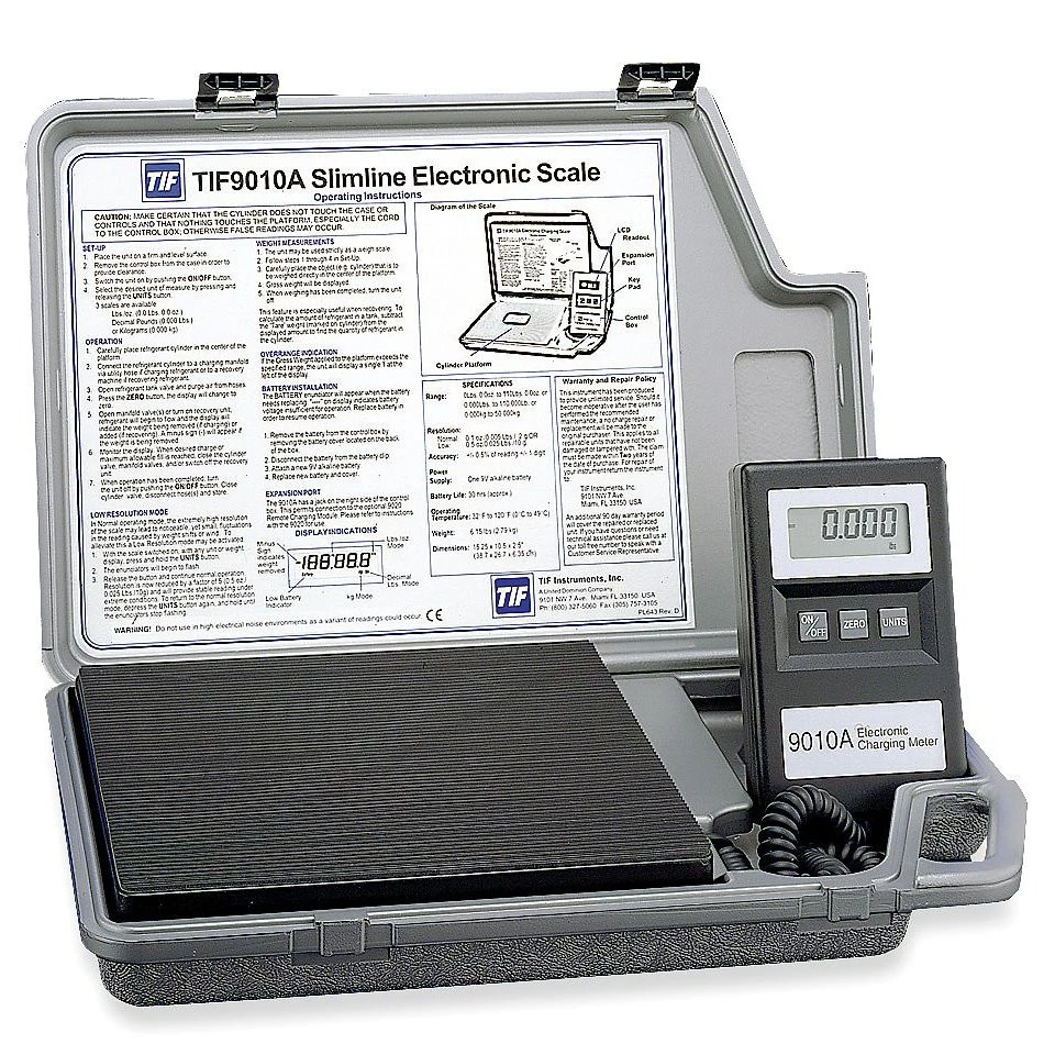 The TIF 9010A Slimline Refrigerant Electronic Scale is a revised and updated version of the classic TIF Slimline scale. The TIF9010A brings greater performance, reliability and usability to the trade. With the greatest resolution in the industry, and no compromise on capacity, this unit offers features and specs that you won’t want to do without.